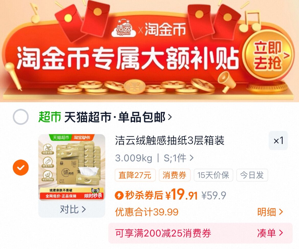 下拉详情拍 19.9亓 0.7/包 洁云 抽纸90抽*27包 好单发报员 2025年12月15日 12:50 0 举报 下拉详情拍19.9亓(0.7/包)洁云 抽纸90抽*27包https://m.tb.cn/h.72itKmC 复制文案