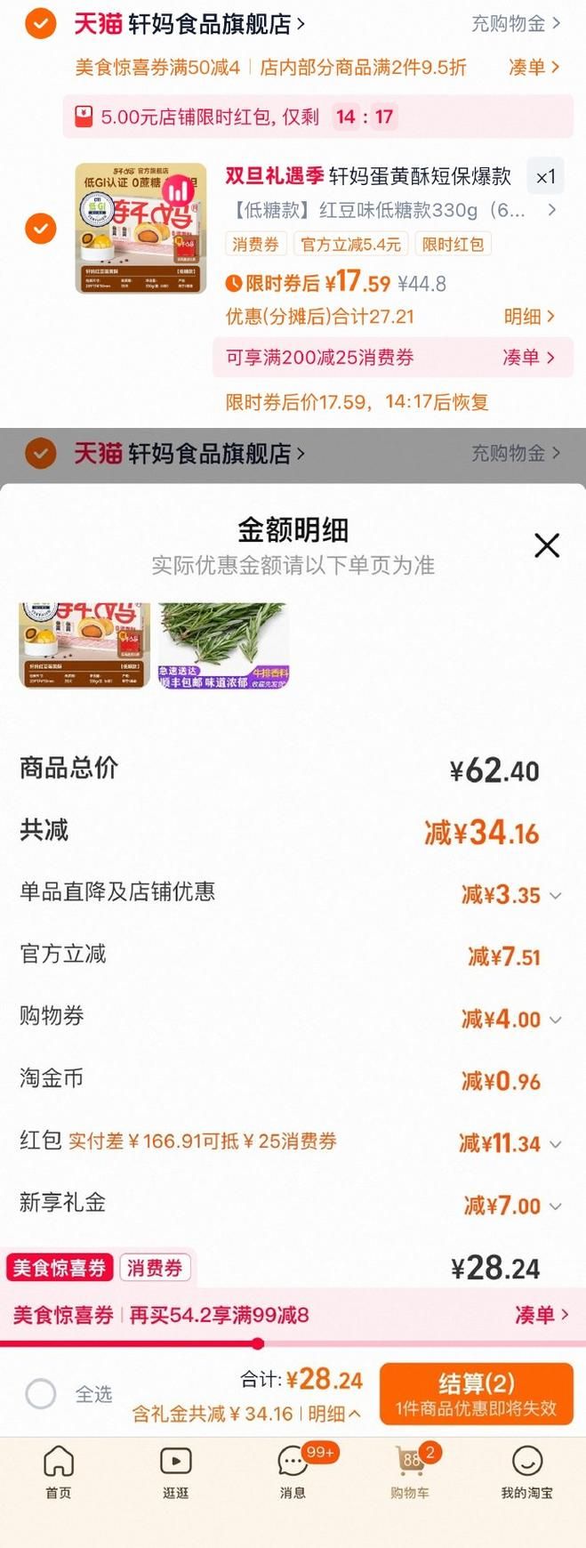 合理凑单后17元