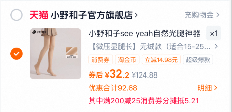 4、凑单加车1件 一起付款,然后退掉凑单 小野和子光腿神器丝袜到手32.2元 好单发报员 2025年12月15日 15:53 0 举报 4、凑单加车1件https://m.tb.cn/h.7dKn66F一起付款,然后退掉凑单小野和子光腿神器丝袜到手32.2元 复制文案