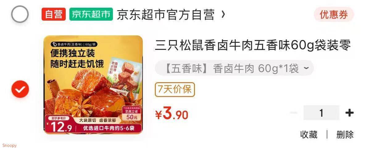 部分地区价 限荆州、汉中地区 三只松鼠香卤牛肉五香味60g袋装 3.9 好单发报员 2025年12月15日 21:20 0 举报 部分地区价限荆州、汉中地区 三只松鼠香卤牛肉五香味60g袋装【3.9】https://u.jd.com/Zac7uOS 复制文案