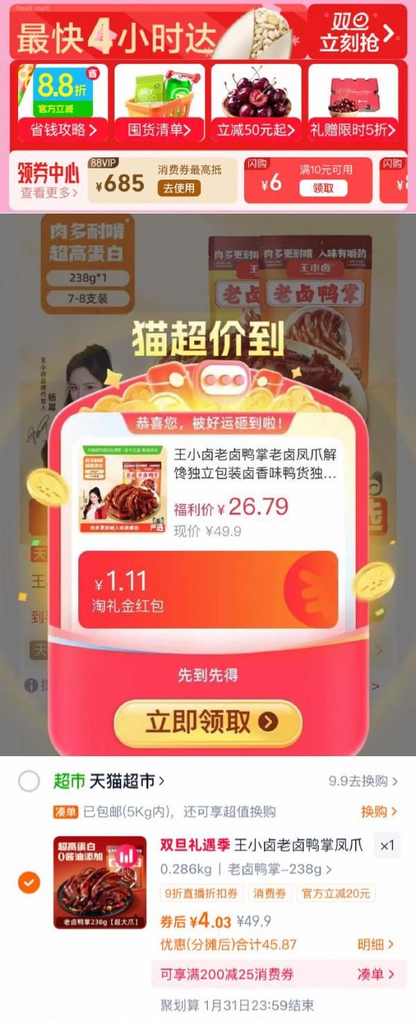 王小卤老卤鸭掌老卤凤爪238g,领礼金