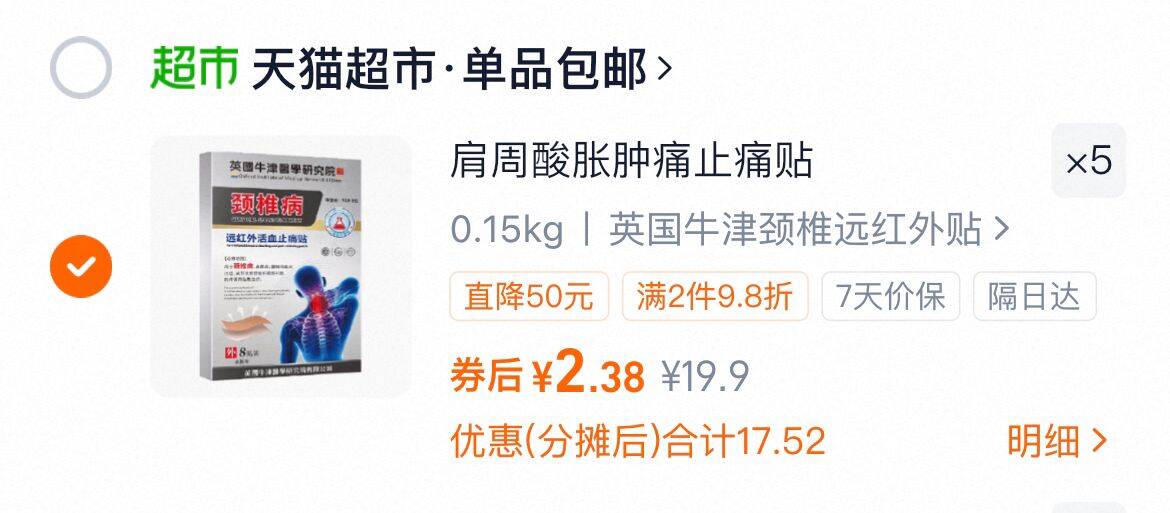 速,拍5件 2.3/盒 止痛贴 40贴