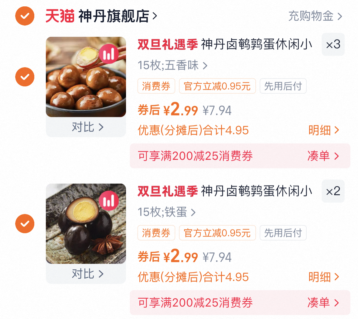 任选5件 2.9/件 神丹馋宝宝鹌鹑卤蛋 75枚 好单发报员 2025年12月16日 00:32 0 举报 任选5件(2.9/件)神丹馋宝宝鹌鹑卤蛋 75枚https://m.tb.cn/h.7dc5htD 复制文案