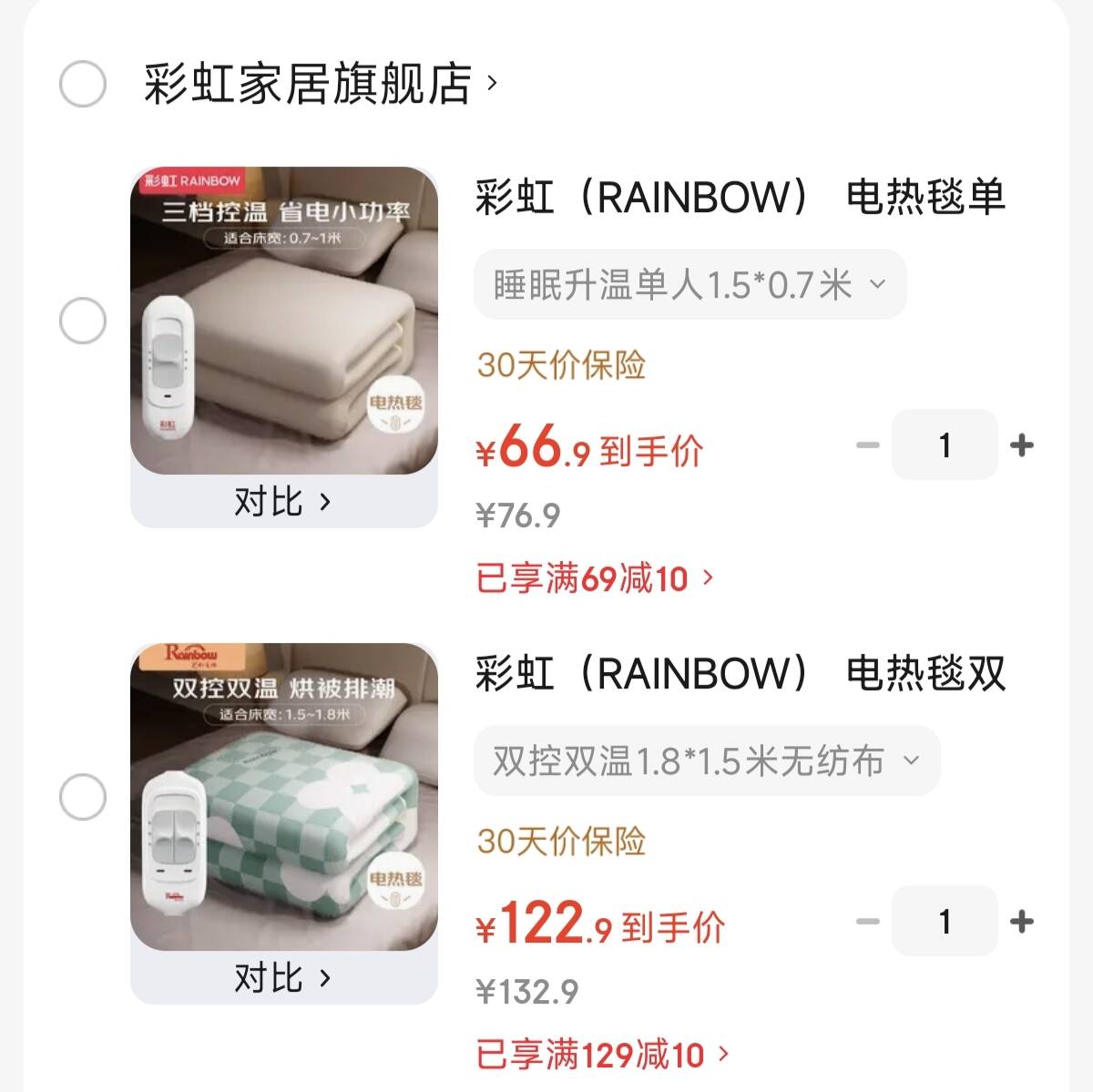 彩虹电热毯 单人三挡1.5*0.7米66元.9 双人双控1.8*1.5米122元.9好单发报员2025年12月16日 14:360举报 彩虹电热毯单人三挡1.5*0.7米66元.9https://u.jd.com/Z6f82CU双人双控1.8*1.5米122元.9https://u.jd.com/ZOjmIp2复制文案