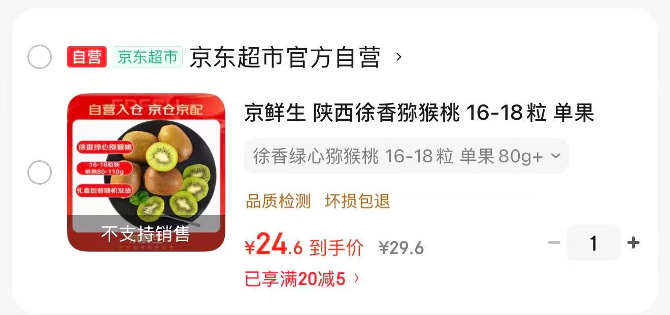 京鲜生 陕西徐香猕猴桃 16-18粒 单果80g起礼盒【24.6】