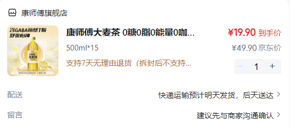 康师傅大麦茶 0糖0脂0能量0咖啡因 植物麦茶饮料决明子 500ml*15瓶 整箱 O62noAYW1lu7oKOe MF56 19.9元好价买,旗舰店的好单发报员2025年12月16日 16:250举报 康师傅大麦茶 0糖0脂0能量0咖啡因 植物麦茶饮料决明子 500ml*15瓶 整箱O62noAYW1lu7oKOe MF56 https://u.jd.com/ZafAkYd19.9元好价买,旗舰店的复制文案
