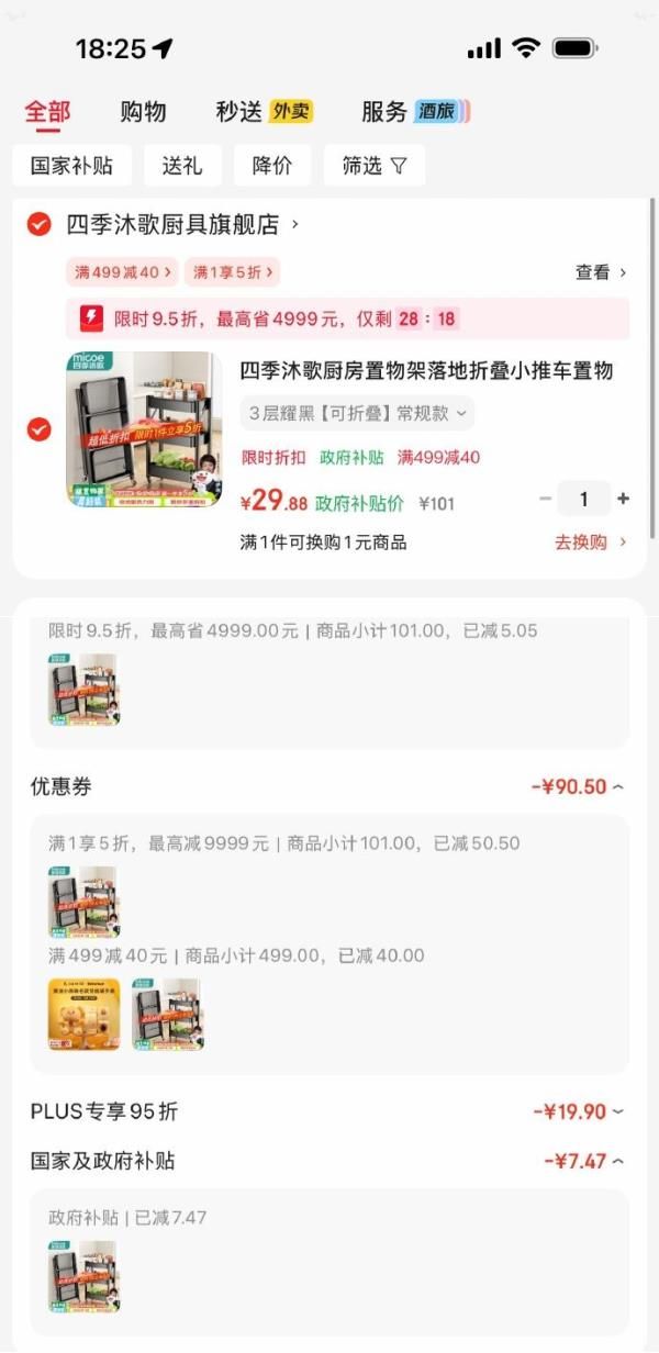 四季沐歌 厨房置物架 3层耀黑可折叠常规款