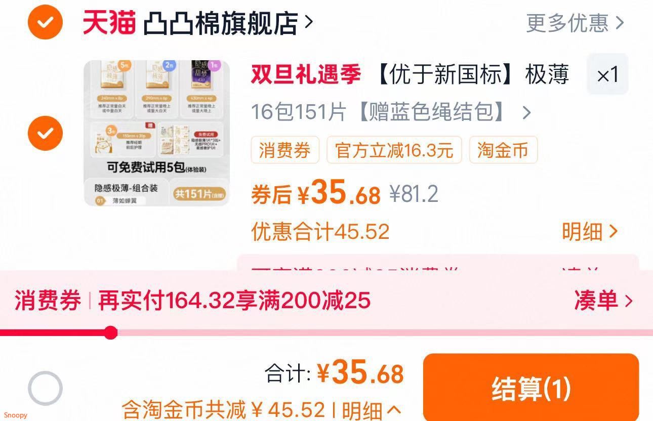 下拉进入金币补贴 抵7.22金币 任拍选项1件 到手35.6亓 如拍151片选项 好单发报员 2025年12月16日 18:28 0 举报 下拉进入金币补贴抵7.22金币 任拍选项1件到手35.6亓 如拍151片选项折0.23/片 赠蓝色结绳包1个凸凸棉极薄少女卫生巾日夜组合装https://m.tb.cn/h.7dSIpUv 复制文案