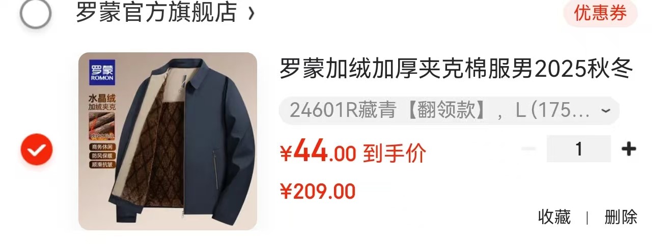 罗蒙 加绒加厚夹克棉服干部装保暖棉外套【44】