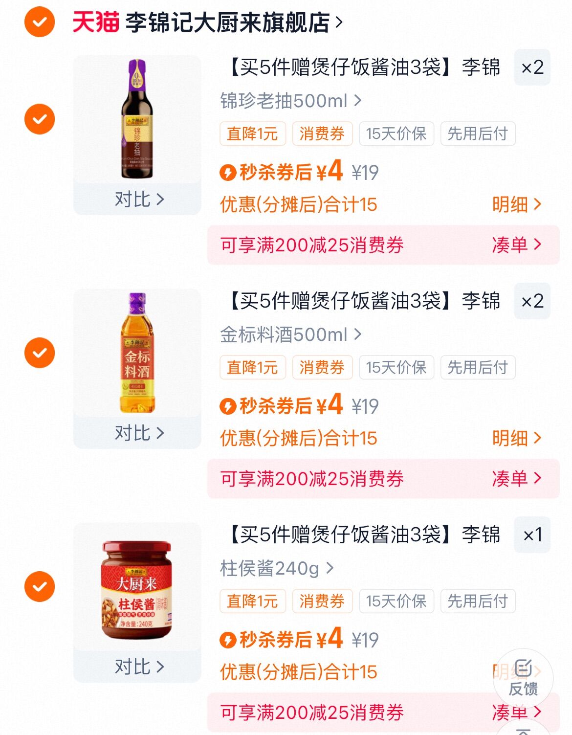 拍5件 4/件 赠煲仔饭酱油3袋 李锦记 厨房调味料 好单发报员 2025年12月17日 11:39 0 举报 拍5件(4/件)赠煲仔饭酱油3袋李锦记 厨房调味料https://m.tb.cn/h.7djCIz0 复制文案