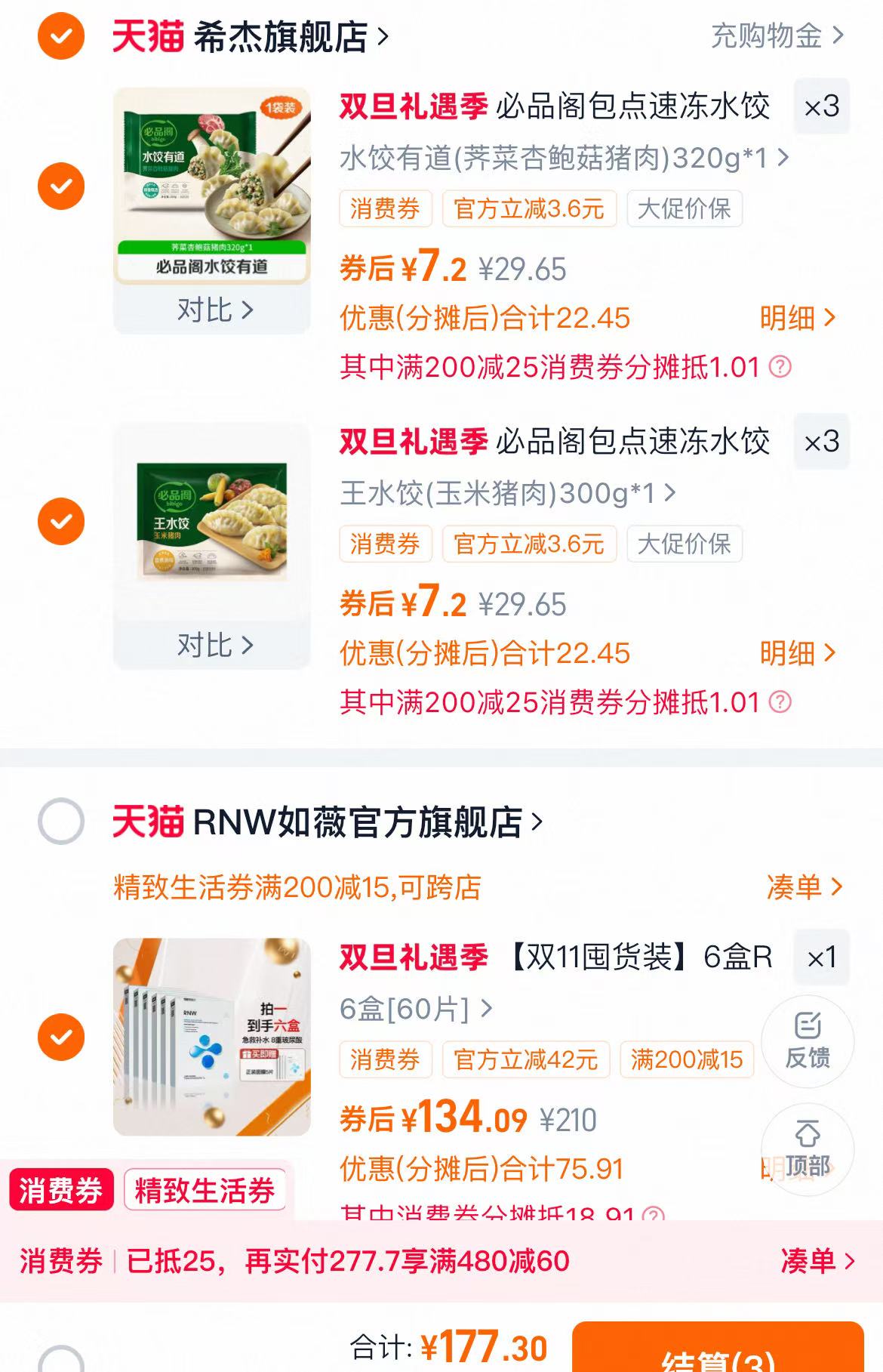 3、凑单加车1件 一起付款,然后退掉凑单 必品阁水饺早餐到手43.32元 好单发报员 2025年12月17日 11:51 0 举报 3、凑单加车1件https://m.tb.cn/h.7dwy2Sj一起付款,然后退掉凑单必品阁水饺早餐到手43.32元 复制文案
