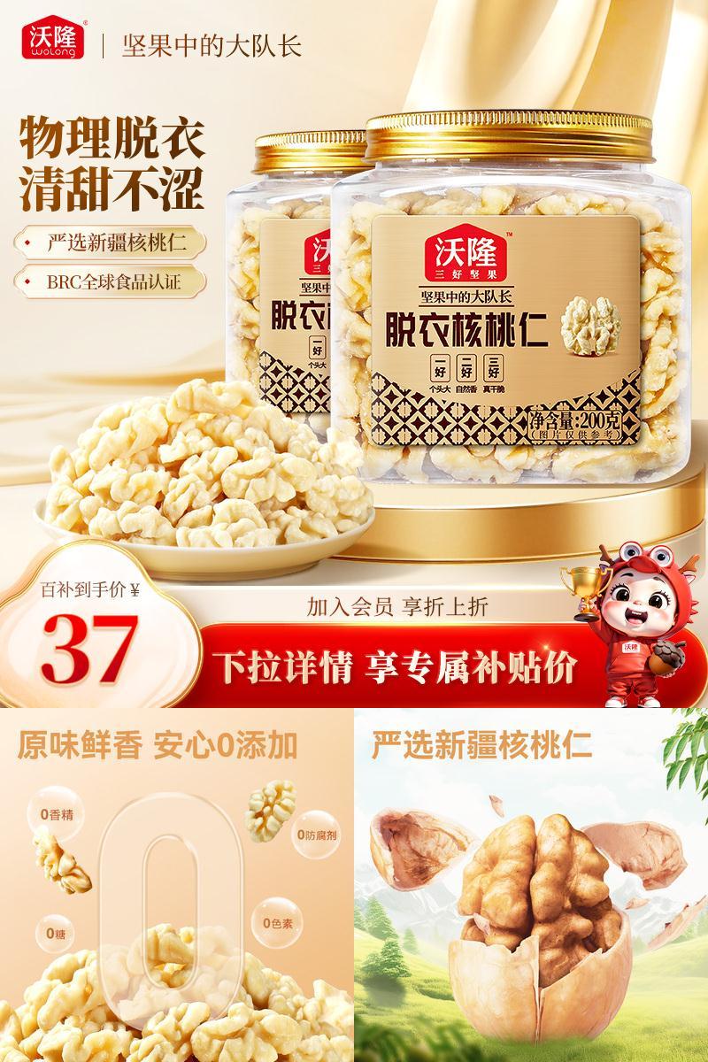 44.99元 沃隆旗舰店 沃隆新疆无皮核桃仁原味无添加去皮核桃仁孕妇坚果零食200gx2罐好单发报员2025年12月17日 14:140举报 44.99元 沃隆旗舰店沃隆新疆无皮核桃仁原味无添加去皮核桃仁孕妇坚果零食200gx2罐https://m.tb.cn/h.732MAZR复制文案