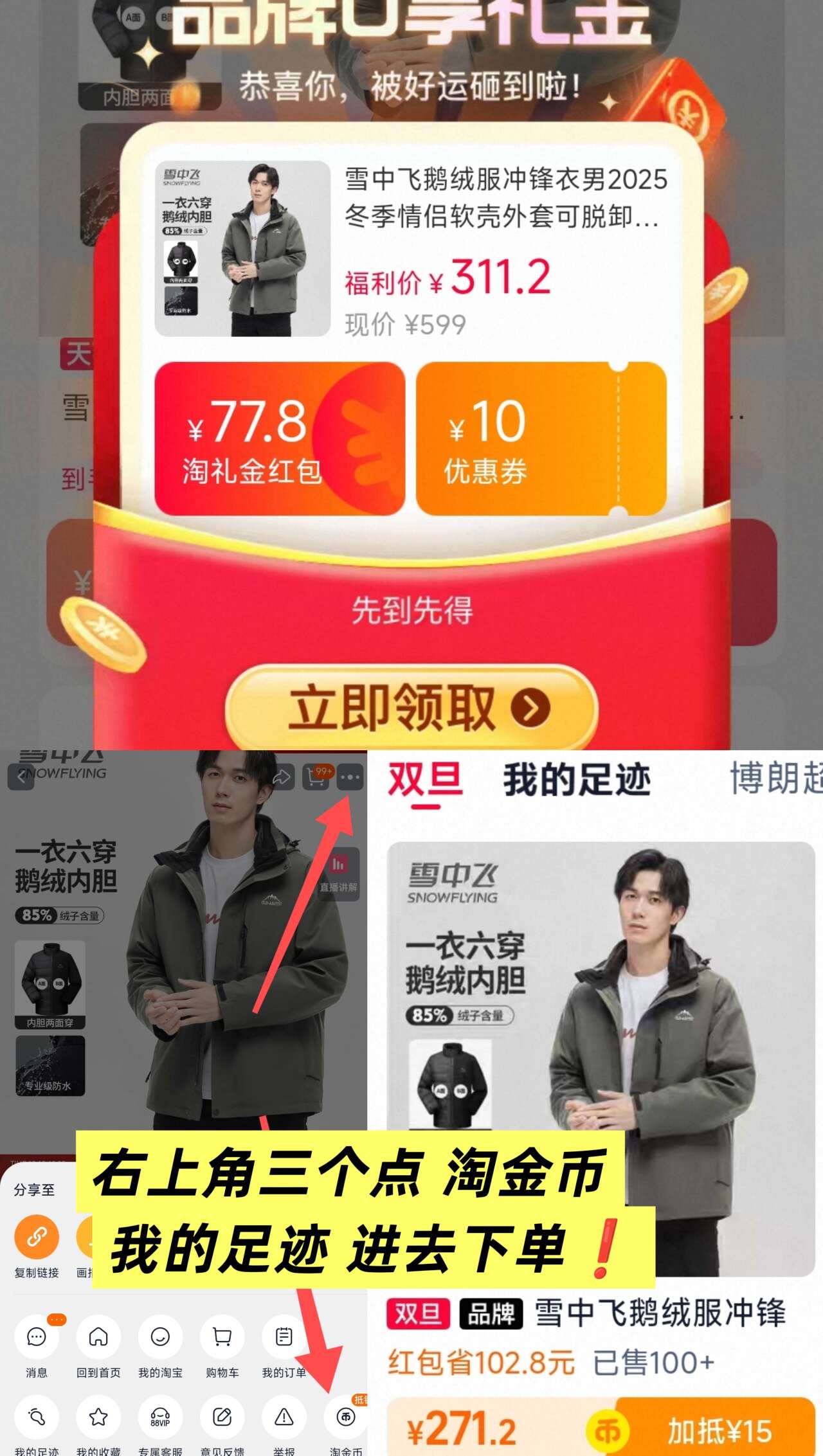 2、我的足迹,找到商品下单