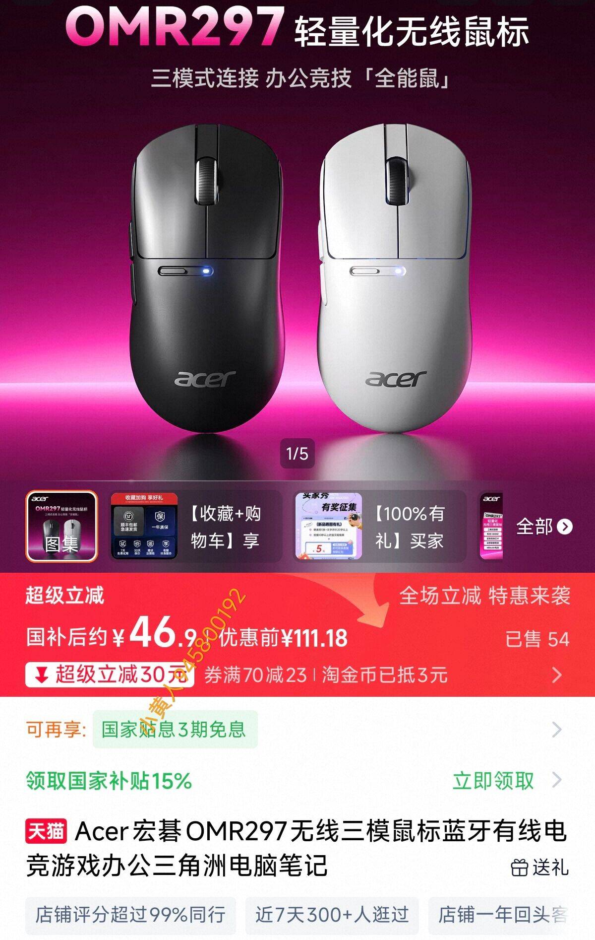 宏碁轻量化三模鼠标 防滑贴,右上角三个点叠淘金币补贴46.9