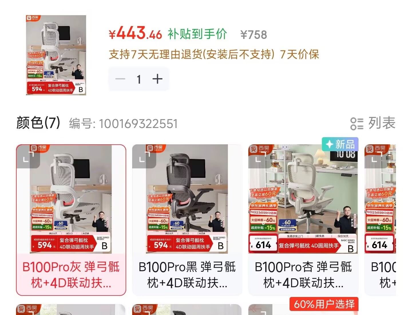 西昊B100Pro 工学椅 囯补443 下単选择以旧换新补贴好单发报员2025年12月17日 20:380举报 西昊B100Pro 工学椅 囯补443https://u.jd.com/ZDXSnpt下単选择以旧换新补贴复制文案