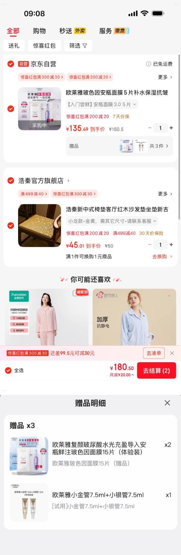 凑后【135.49】赠:欧莱雅玻色因面膜30片 小金管7.5ml 小银管7.5ml