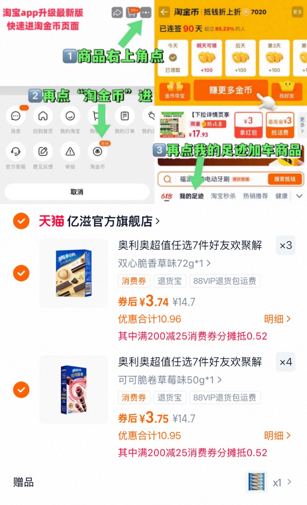 2、凑1件,用200-25消费劵