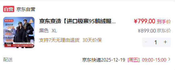 京东京造 进口极寒95鹅绒服 羽绒服男外套女冬季新款中长款 黑色 XL 又降价了,799元好单发报员2025年12月18日 13:310举报 京东京造【进口极寒95鹅绒服】羽绒服男外套女冬季新款中长款 黑色 XLhttps://u.jd.com/Z1kXNDq又降价了,799元复制文案