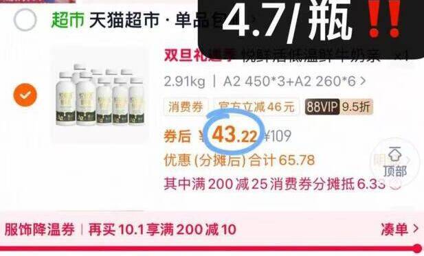 2.凑单商品 加车1件 一起付款 再退款凑单商品 悦鲜活鲜奶 vip付43.2亓好单发报员2025年12月18日 13:320举报 2.凑单商品 加车1件一起付款 再退款凑单商品https://m.tb.cn/h.73Zzglf悦鲜活鲜奶 vip付43.2亓组合2.91L爱喝速度啦鲜奶活性营养更丰富 口感好复制文案