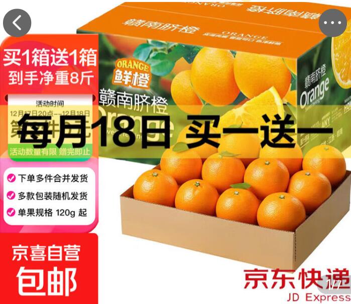 速度 自营脐橙 买1送1 京东自营的,品质可以放心 到货不满意,随便退换货~ 好单发报员 2025年12月18日 14:06 0 举报 速度 自营脐橙 买1送1京东自营的,品质可以放心到货不满意,随便退换货~-赣南脐橙 到手净重8斤 11.8亓https://u.jd.com/ZakZZkr 复制文案