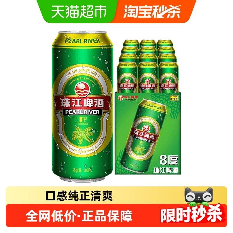 珠江啤酒8度清爽绿金啤酒500ml*12罐