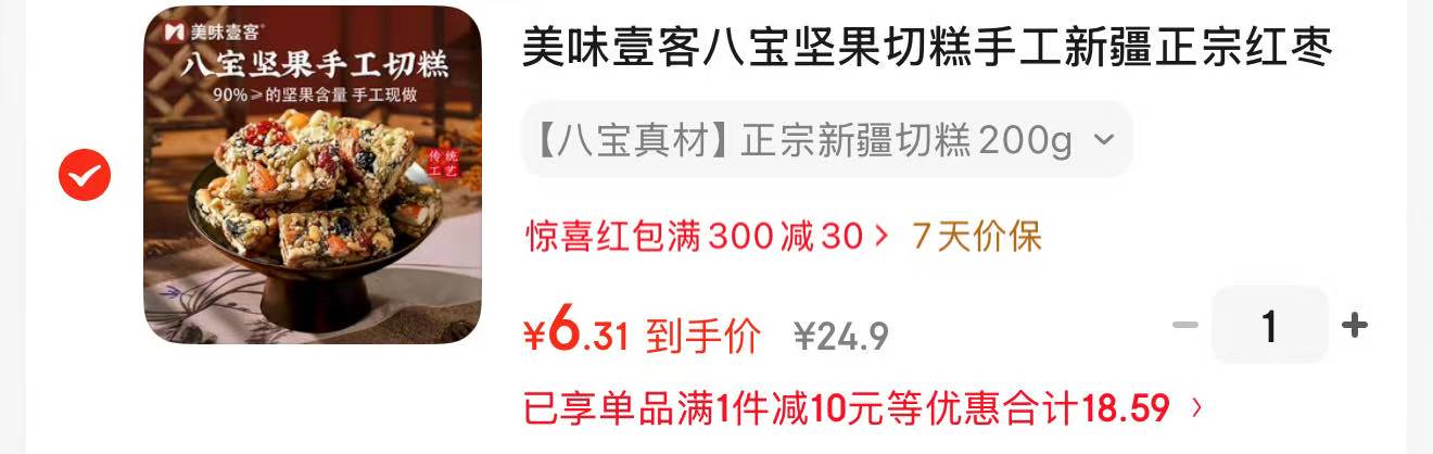 美味壹客八宝坚果切糕手工新疆正宗红枣核桃营养传统糕点网红零食小吃200g