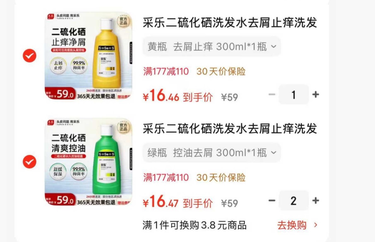 采乐二硫化硒洗发水300ml*1瓶 ,任选3件 凑后折16.4/瓶