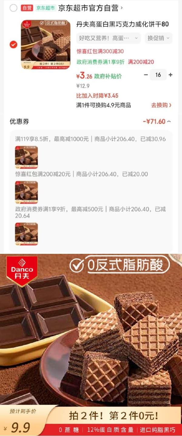 丹夫高蛋白黑巧克力威化饼干80g/袋