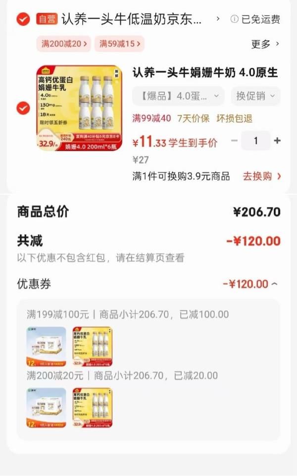认养一头牛娟姗牛奶 4.0原生蛋白200ml*6瓶