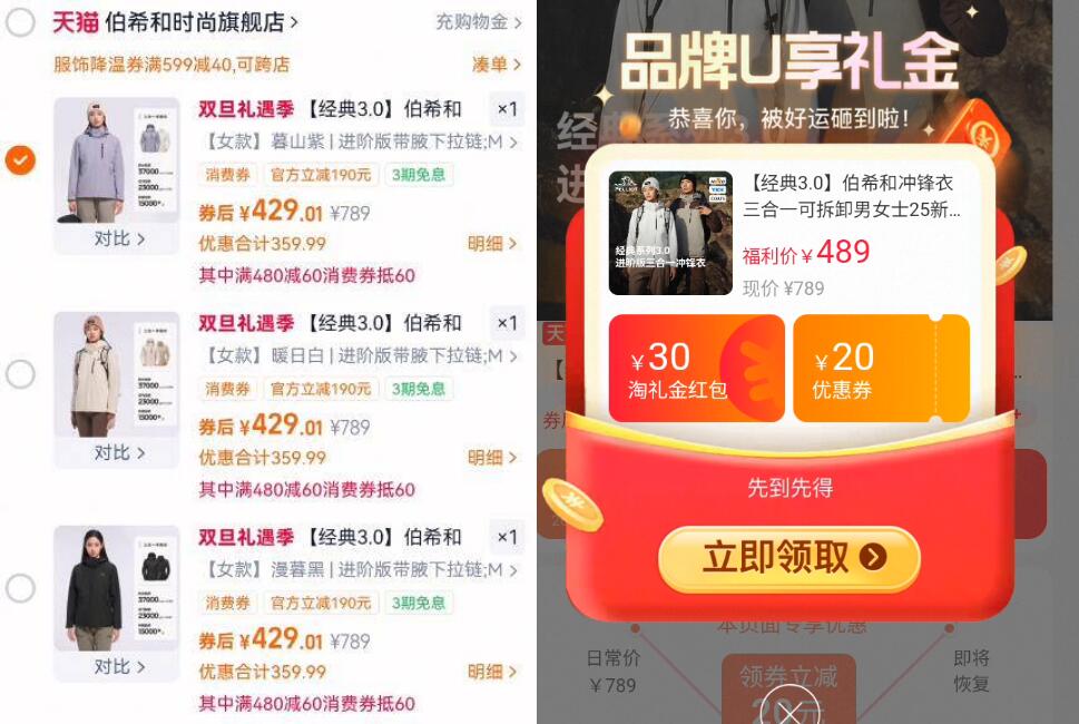 429亓京东同款990亓 需叠88vip480-60消费券 需叠楼上599-40服饰降温券好单发报员2025年12月19日 16:110举报 429亓京东同款990亓需叠88vip480-60消费券需叠楼上599-40服饰降温券【伯希和】3.0三合一冲锋衣https://m.tb.cn/h.7eH5GBf复制文案
