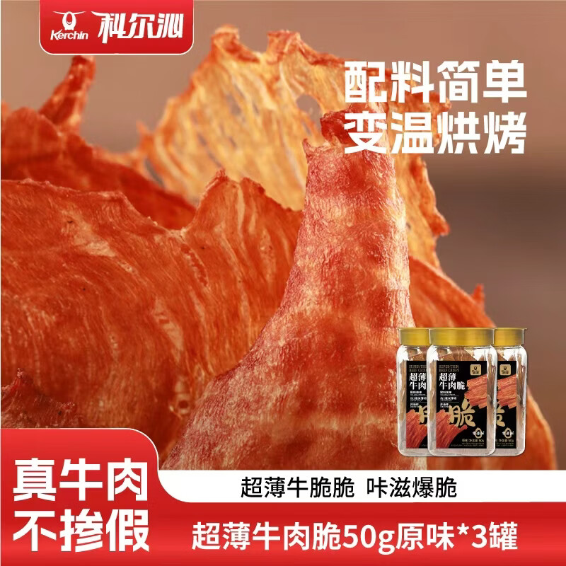 科尔沁 超薄风干牛肉脆片50g 3罐