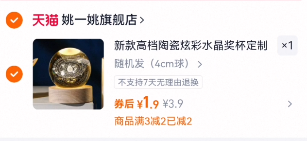 1.9亓元直接拍 带底座水晶杯小夜灯