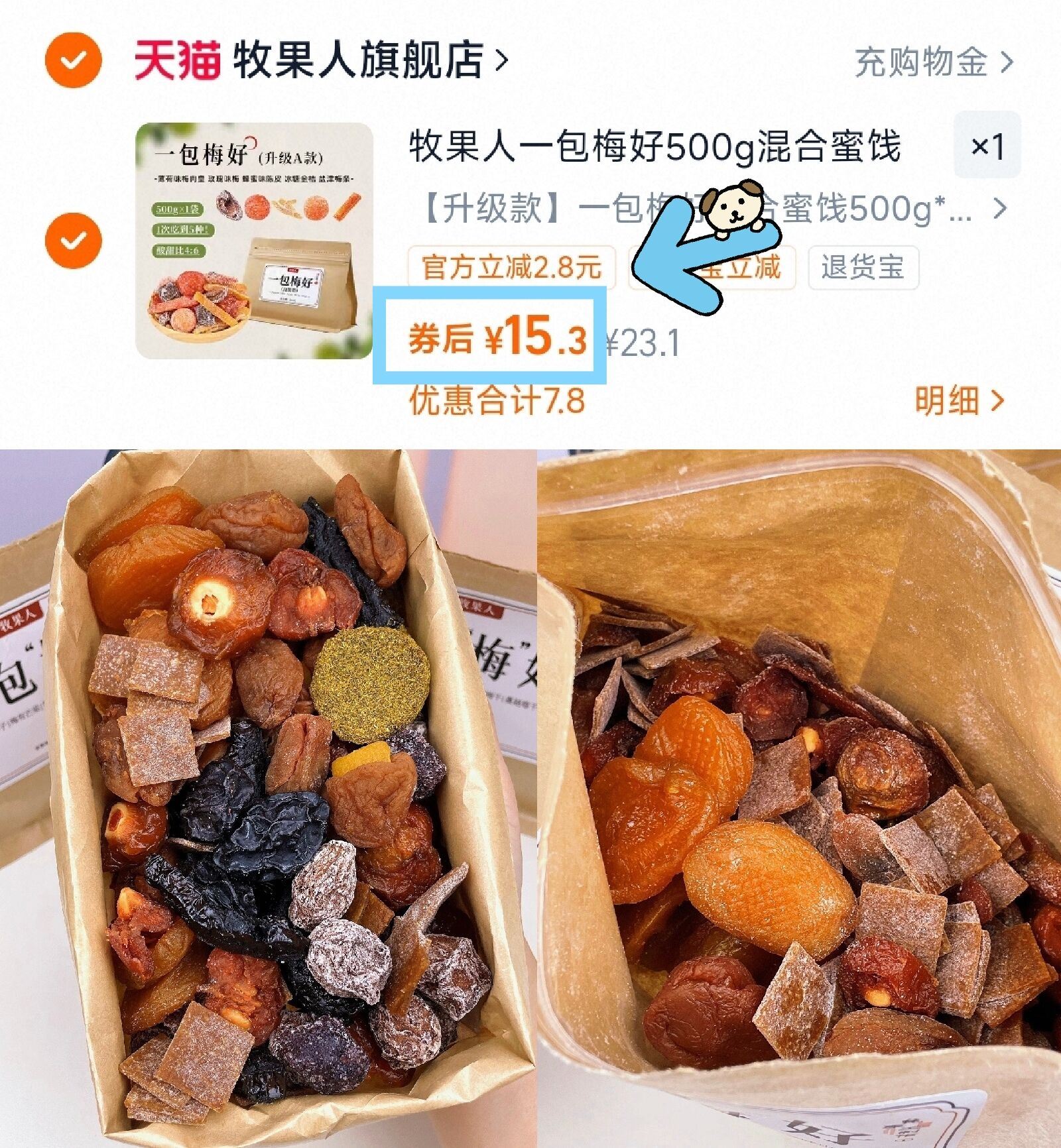 到手一斤才15.3亓! 爱吃梅子蜜饯的来尝尝~ ---好单发报员2025年12月20日 17:080举报 到手一斤才15.3亓!爱吃梅子蜜饯的来尝尝~---牧果人一包梅好蜜饯500ghttps://m.tb.cn/h.7eKS1yf多种梅子混合 一次吃过瘾包装带密封条 吃不完也不怕复制文案