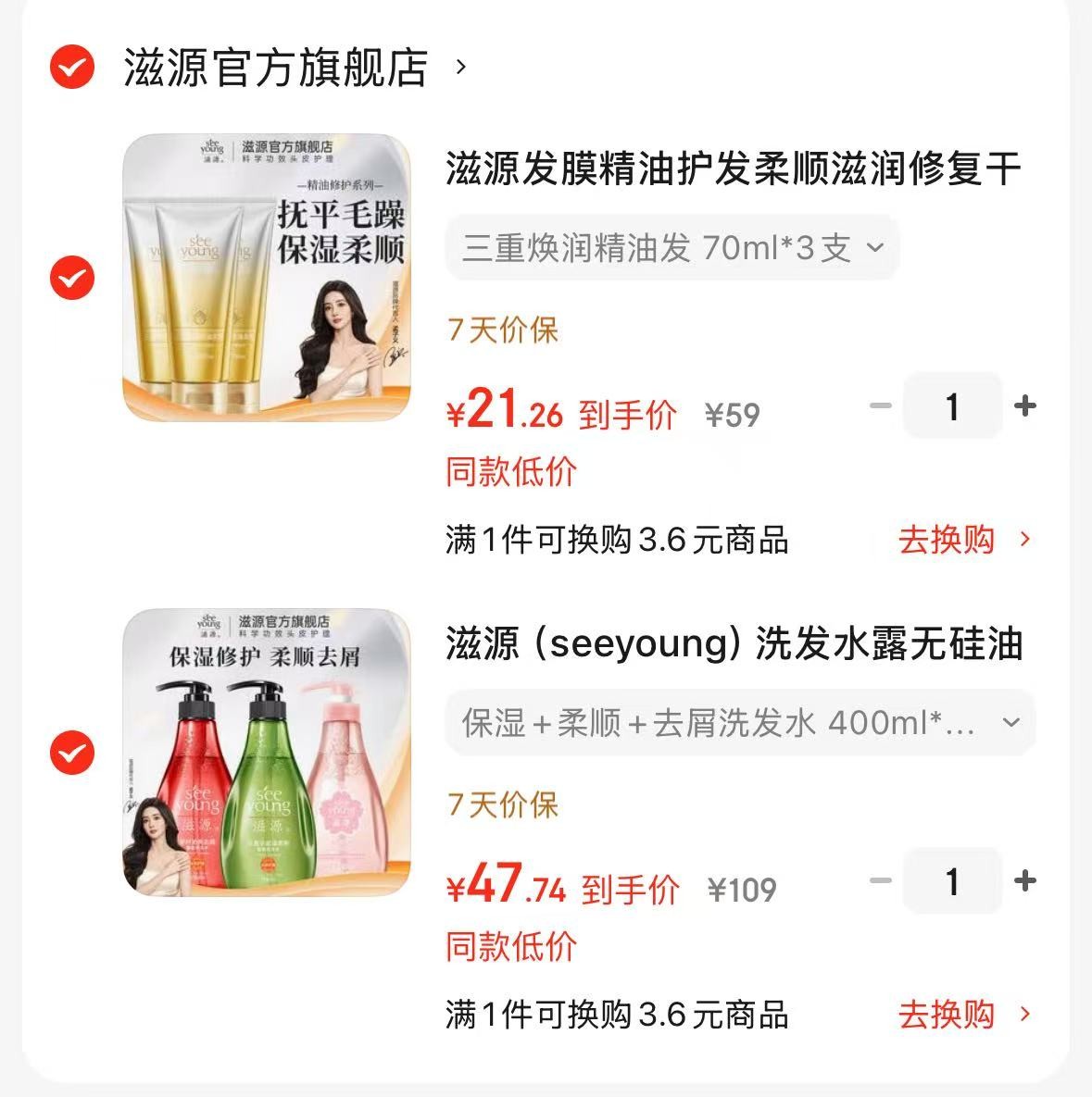 滋源 洗发水 保湿 柔顺 去屑洗发水 400ml*3瓶