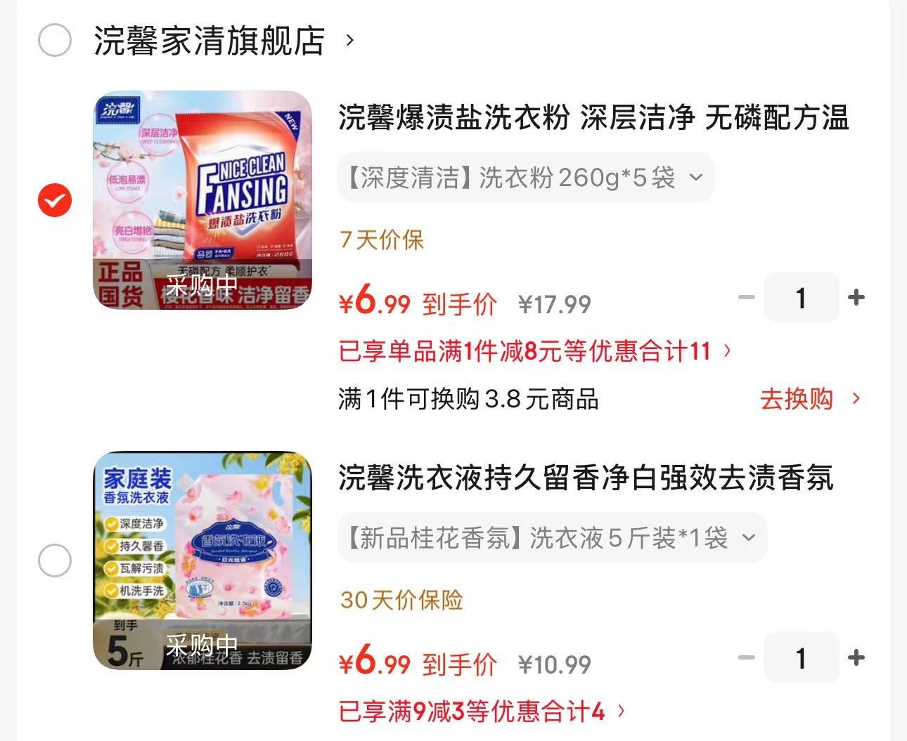 浣馨 爆渍盐洗衣粉 260g*5袋【6.9】