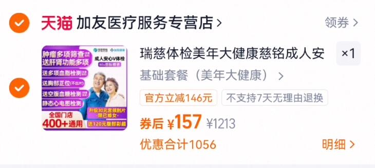 157亓送什么不如送键慷 活动返场!日常都要290亓 美年大健.康瑞慈体.检套餐好单发报员2025年12月21日 00:410举报 157亓送什么不如送键慷活动返场!日常都要290亓美年大健.康瑞慈体.检套餐https://m.tb.cn/h.7eWT9Xq复制文案
