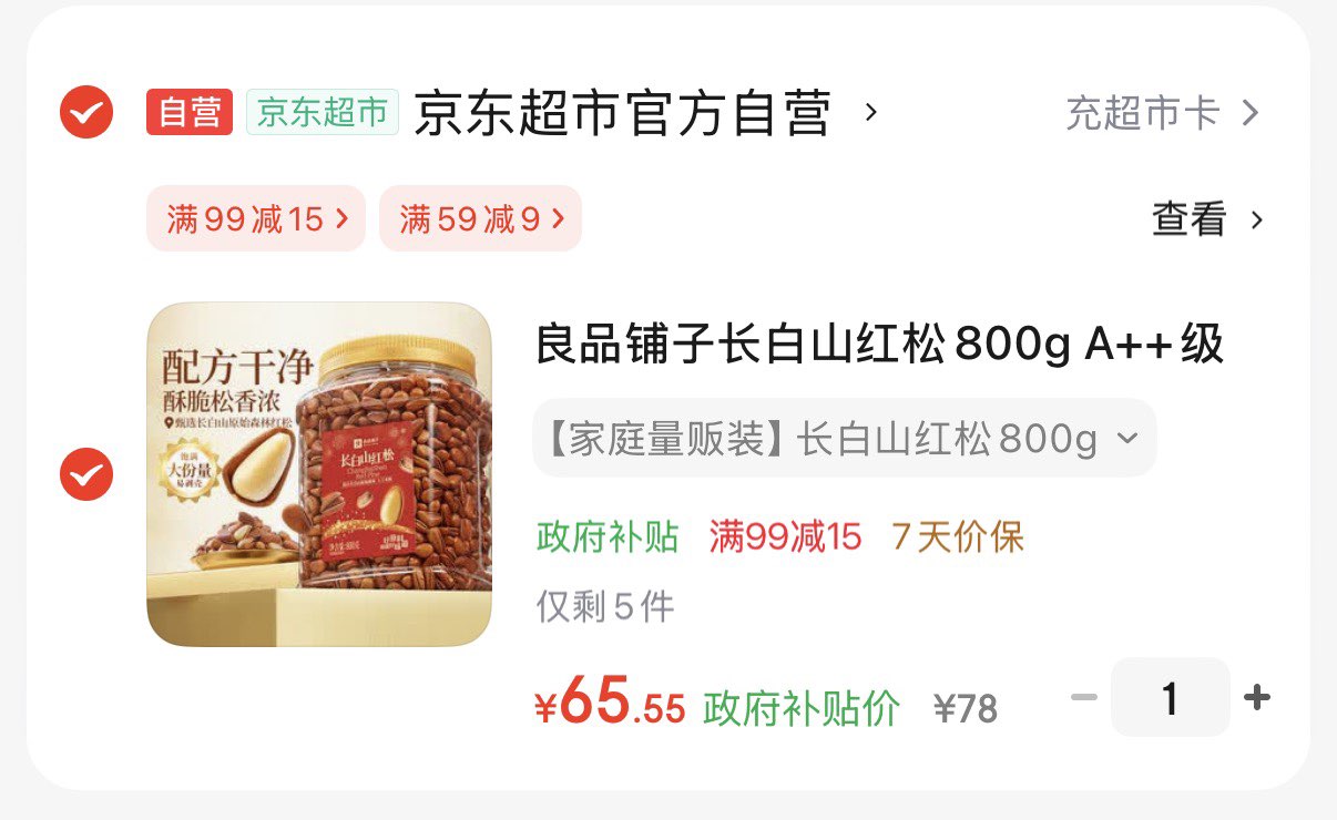 良品铺子长白山红松800g A 级 选银h卡/白条付窾65.5亓好单发报员2025年12月21日 12:040举报 良品铺子长白山红松800g A 级选银h卡/白条付窾65.5亓https://u.jd.com/AGLE0dk复制文案