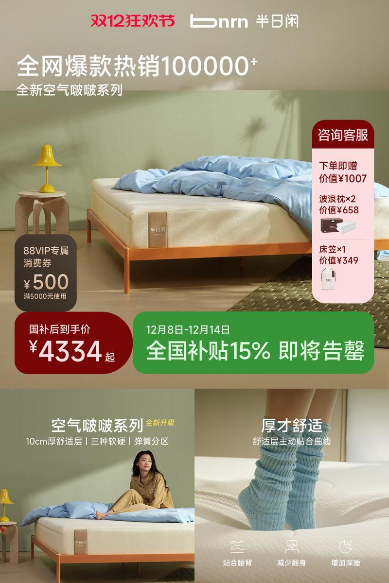 8199元 半日闲家具旗舰店 半日闲空气啵啵软硬适中弹簧床垫好单发报员2025年12月21日 12:270举报 8199元 半日闲家具旗舰店半日闲空气啵啵软硬适中弹簧床垫https://m.tb.cn/h.7V406p0复制文案