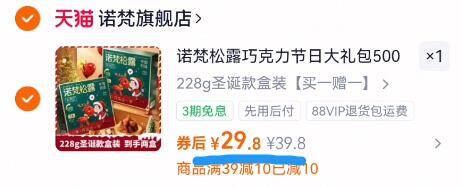 速度买一赠一 拍下29.8亓折14.9亓/盒 诺梵松露巧克力礼盒228g*2盒好单发报员2025年12月21日 23:340举报 速度买一赠一拍下29.8亓折14.9亓/盒诺梵松露巧克力礼盒228g*2盒https://m.tb.cn/h.74j803A复制文案