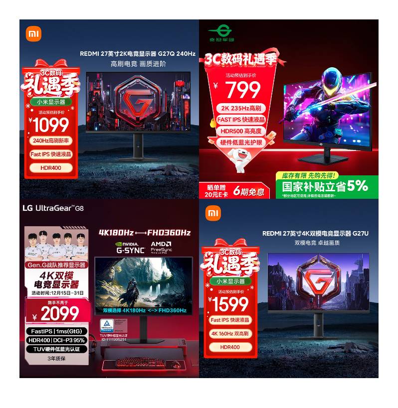 小米REDMI 27英寸2K 240Hz电竞显示器 Fast IPS,989