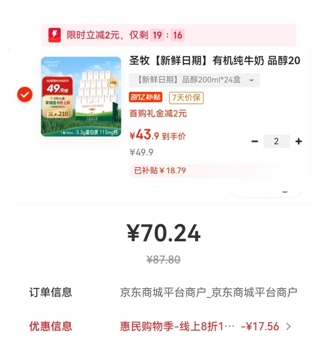 ②拍2! 圣牧有机奶24盒