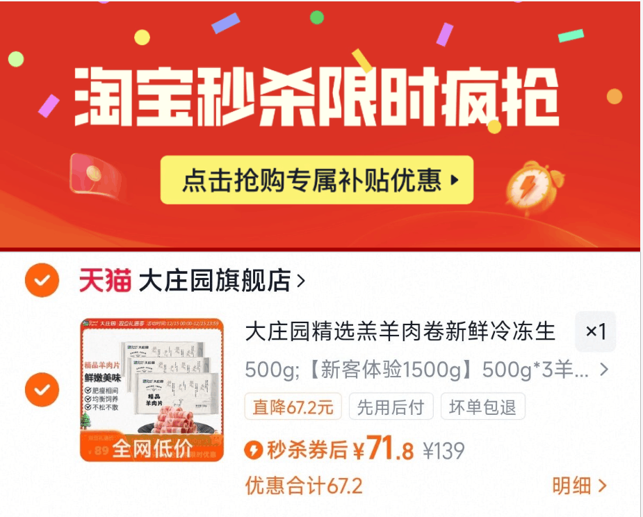 23/斤 下拉详情拍,71.8亓 大庄园 羊肉卷1500g 好单发报员 2025年12月22日 10:43 0 举报 (23/斤)下拉详情拍,71.8亓大庄园 羊肉卷1500ghttps://m.tb.cn/h.7Vm72ik 复制文案