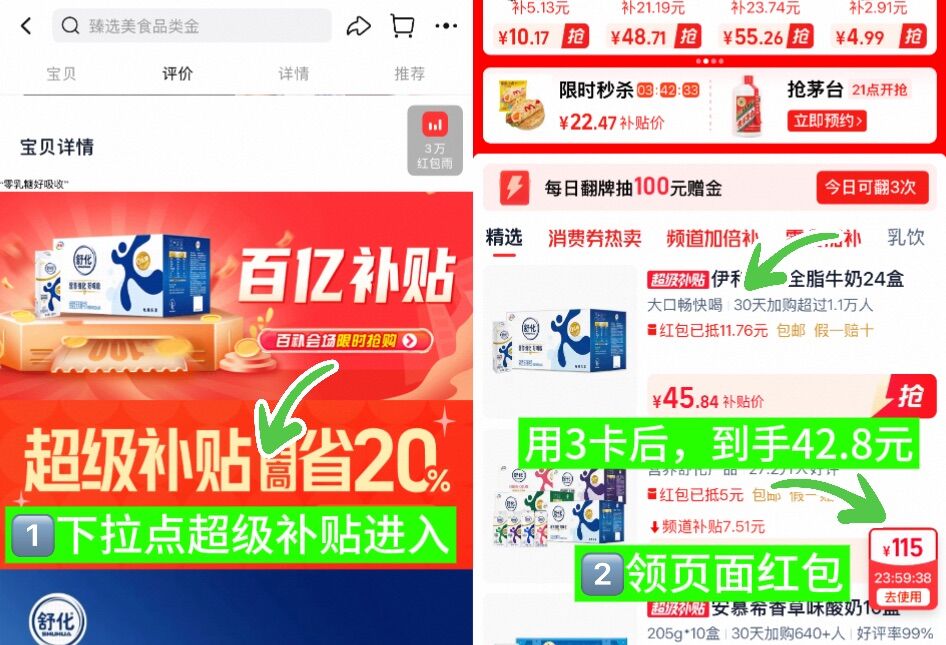 1.7/盒 用3卡后,42.8亓 下拉详情右下角领虹包拍好单发报员2025年12月22日 13:260举报 (1.7/盒)用3卡后,42.8亓下拉详情右下角领虹包拍伊利 舒化全脂牛奶220ml*24盒https://m.tb.cn/h.7VVQZB3复制文案