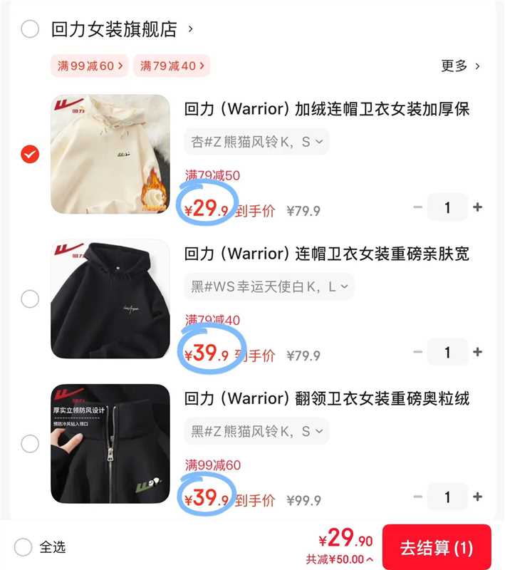 29.9元加绒连帽卫衣
