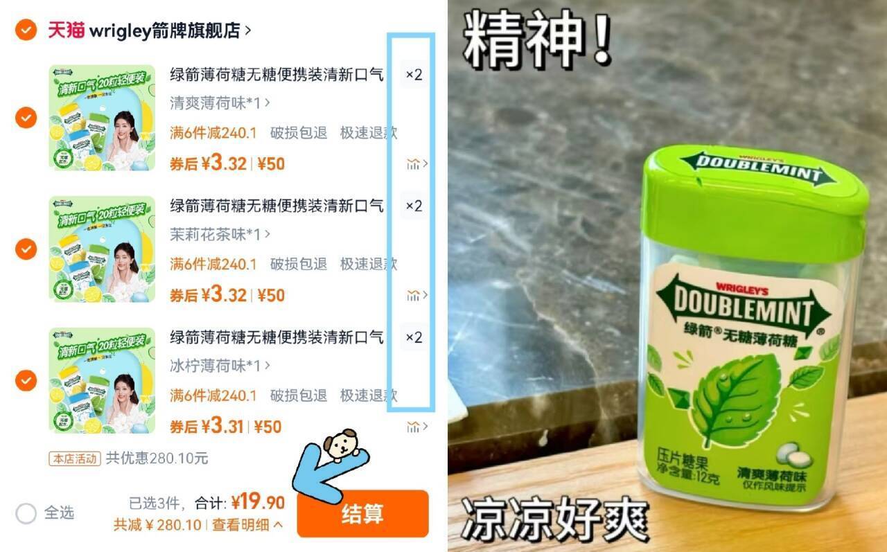【绿箭】无糖薄荷糖共20粒*6瓶