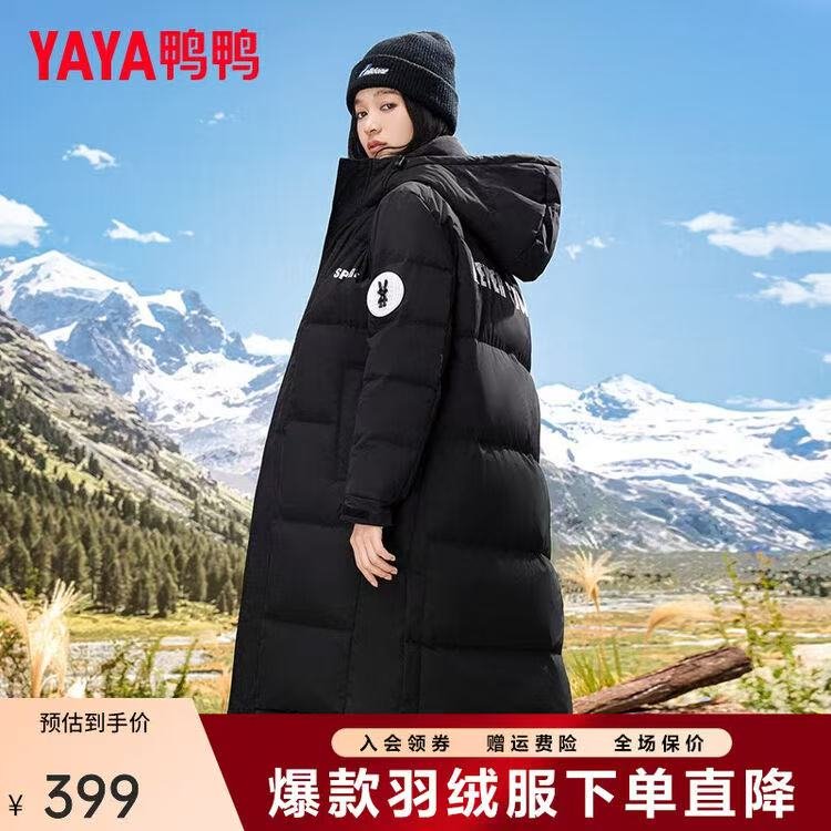 鸭鸭 女长款过膝连帽羽绒服