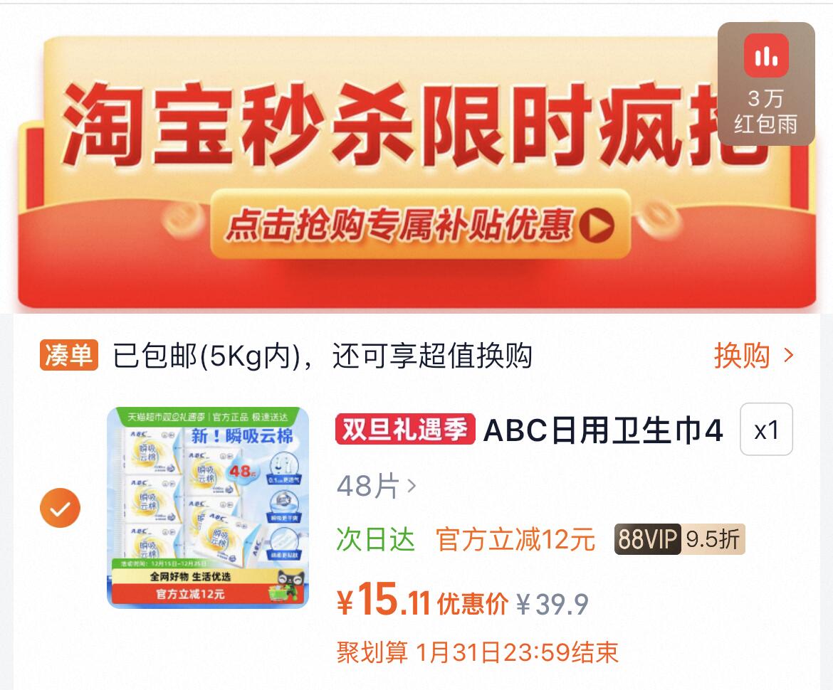 下拉详情拍,15亓 0.3/片 ABC卫生巾日夜组合48片 好单发报员 2025年12月22日 15:24 0 举报 下拉详情拍,15亓(0.3/片)ABC卫生巾日夜组合48片https://m.tb.cn/h.740nK01 复制文案