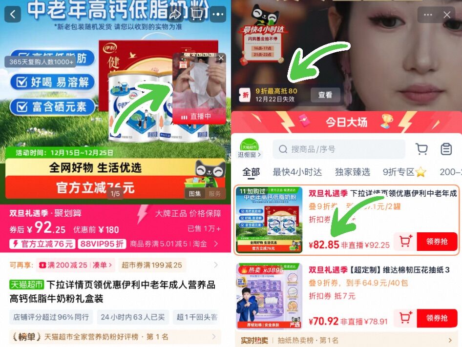 速!vip 50亓 25/罐 伊利 高钙低脂牛奶粉700g*2罐 ①右上角进直博领9折劵,加1次 好单发报员 2025年12月22日 16:02 0 举报 速!vip 50亓(25/罐)伊利 高钙低脂牛奶粉700g*2罐①右上角进直博领9折劵,加1次②再下拉进‘陶金帀’加1次https://m.tb.cn/h.7VTYGjO 复制文案