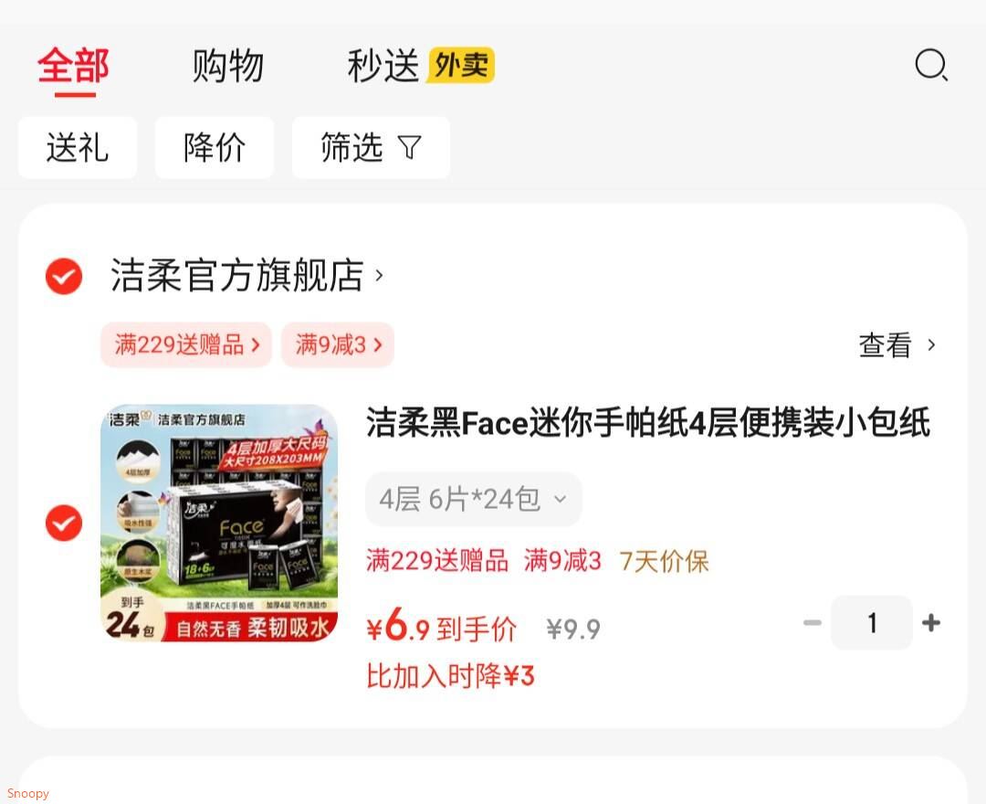 试用9-3: 洁柔黑Face迷你手帕纸4层 6片*24包 6.9 好单发报员 2025年12月23日 10:21 0 举报 试用9-3:https://u.jd.com/A1uK4cU 洁柔黑Face迷你手帕纸4层 6片*24包【6.9】https://u.jd.com/AOixBfb 复制文案