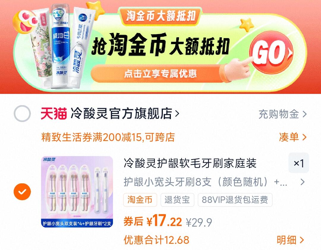 下拉详情拍,17亓 1.7/只 冷酸灵护龈牙刷10只 好单发报员 2025年12月23日 15:28 0 举报 下拉详情拍,17亓(1.7/只)冷酸灵护龈牙刷10只https://m.tb.cn/h.74kTTkk 复制文案